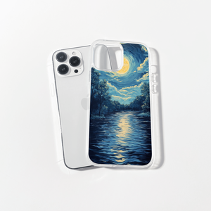Moonlit river and trees painting